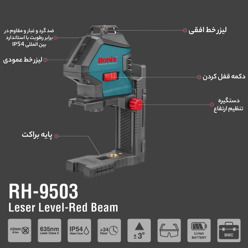 | ویژگیهای تراز لیزری | نمایش خط لیزر افقی , نمایش خط لیزر عمودی |