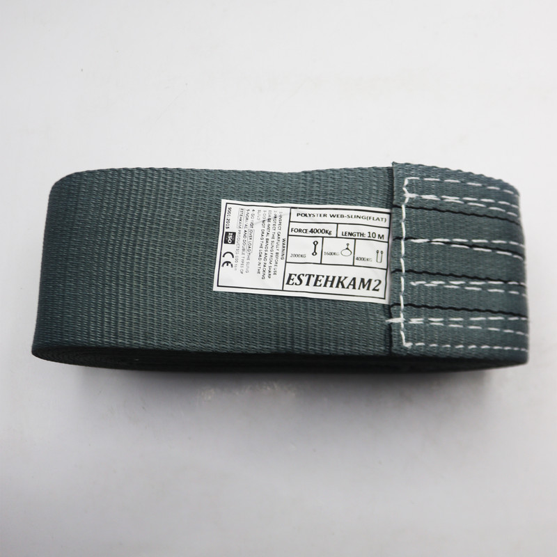 این محصول از جنس پلی استر بوده و عرض تسمه 10 سانتی متر می باشد. دو سر آن به صورت حلقه بوده و طول تسمه از سر یک حلقه تا سر حلقه دیگر 10متر است. طول هر حلقه 34 سانتی متر است ولی اگر بخواهیم حلقه را به دور یک لوله یا جسم استوانه ای شکل بیاندازیم قطر استوانه مذکور حداکثر 20 سانتی متر می تواند باشد.تسمه فوق دولایه می باشد که این امر مقاومت آن را چند برابر می نماید به طوری که ضخامت تسمه چیزی حدود 6 تا 7 میلی تر است. قابليت تحمل وزن تسمه به صورت مستقيم 2 تن , به صورت U شکل 4 تن و به صورت دار حلقه 1600کيلوگرم می باشد.