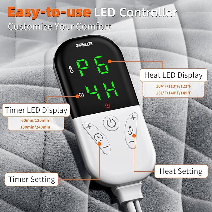 | سایر توضیحات | اندازه کامل و آرامش بدن: پد گرمایشی دارای اندازههای بزرگ (32 x 16 اینچ) است که برای درد عضلات پشت، گردن، شانهها، شکم (دوره قاعدگی)، پاها، بازوها و غیره مناسب است، که به تقویت عضلات کمک میکند. گردش خون و خداحافظی با سفت اندام در زمستان. نکات: از دسته، نشستن یا له کردن پد خودداری کنید. 6 سطح گرمایش و 4 تنظیم خاموش شدن خودکار: پدهای حرارتی الکتریکی با 6 تنظیم حرارتی از 40℃ تا 60℃ (104℉-149℉) سریع گرم می شوند، شما می توانید دما را با دقت کنترل کنید. همچنین دارای 4 گزینه خاموش شدن خودکار 1، 2، 3 و 4 ساعته است که بسیار ایمن هستند و باعث صرفه جویی در مصرف انرژی و جلوگیری از گرمای بیش از حد می شود که می تواند منجر به سوختگی شود. فلانل فوق العاده نرم و قابل شستشو در ماشین: پد گرمکن الکتریکی برای تسکین کمردرد از فلانل فوق العاده نرم و راحت ساخته شده است که حداکثر راحتی را برای بدن شما فراهم می کند و به خوبی با هر قسمت از بدن شما متناسب می شود. برای راحتی شما، پدهای گرمایشی به راحتی تمیز می شوند و قابل شستشو با ماشین لباسشویی هستند. گزینههای گرمای مرطوب و خشک: میتوانید با توجه به نیاز خود یک پد حرارتی خشک یا مرطوب برای تسکین درد شکم، گردن، شانه انتخاب کنید، فقط یک غبار ریز روی سطح پد اسپری کنید. همچنین شامل یک سیم برق بسیار بلند 87 اینچی است، بنابراین می توانید از راحتی تخت، کاناپه یا صندلی اداری خود راحت شوید! پد حرارتی صرفه جویی در انرژی: مقرون به صرفه و کارآمد، این پد گرمایشی XXL برقی به ازای هر جلسه درمان 3 ساعته 1p هزینه دارد. از گرما درمانی گرم و آرام بخش بدون نگرانی از هزینه های بالای انرژی لذت ببرید، راه حلی مقرون به صرفه برای استفاده روزمره.پد گرمایشی را به یک پریز برق وصل کنید (سیم خروجی کنترلر محکم در پد گرمایش قرار داده شده است). تنظیم حرارت مورد نظر خود را انتخاب کنید. پد حرارتی را روی ناحیه مورد نظر بدن خود قرار دهید. پس از پایان استفاده از پد گرمایشی را خاموش کرده و از برق بکشید. |