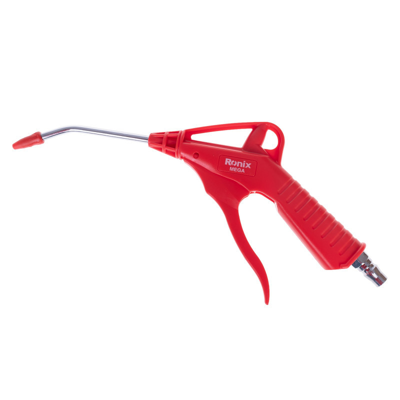 تفنگی باد یا باد پاش از جمله ابزارهایی است که برای پاکسازی سطوح و تراشهها و از این قبیل فعالیت ها مورد استفاده قرار میگیرد. این ابزار با ساختاری مشابه تفنگ، به کمپرسور هوا وصل میشود و با شدت باد سطوح را پاک میکند.یکی از نمونههای با کیفیت و محبوب این دسته، تفنگ باد مگا رونیکس مدل RH-6701 است.شرکت رونیکس برای ساخت این تفنگی باد، از نازلی ضد زنگ با طول 10 سانتیمتر استفاده کرده است. جنس نوک نازل این ابزار، از پلی اورتان (PU) و جنس بدنهی آن از پلیاکسیمتیلن (POM) است. شیر اسلحهای انتهایی این محصول هم، از جنس پلی فنیلن سولفید (PPS) ساخته شده است.باد پاش رونیکس با حداکثر فشار 16 بار و سطح صدای 90 دسی بل، ظرفیت جریان خروجی 500 لیتر بر دقیقه را داراست. دسته این ابزار به صورت تفنگی با ساختار ارگونومیک است. ماشهی بلند این درجه باد، این امکان را به کاربر میدهد تا به راحتی آن را در دست بگیرد و کنترل مناسبی بر روی جریان و حجم هوا داشته باشد.این محصول رونیکس که مگا Mega نام دارد، بسیار سبک و خوش دست به وزن 125 گرم است و در برابر آب و روغن، به خوبی دوام خواهد آورد.