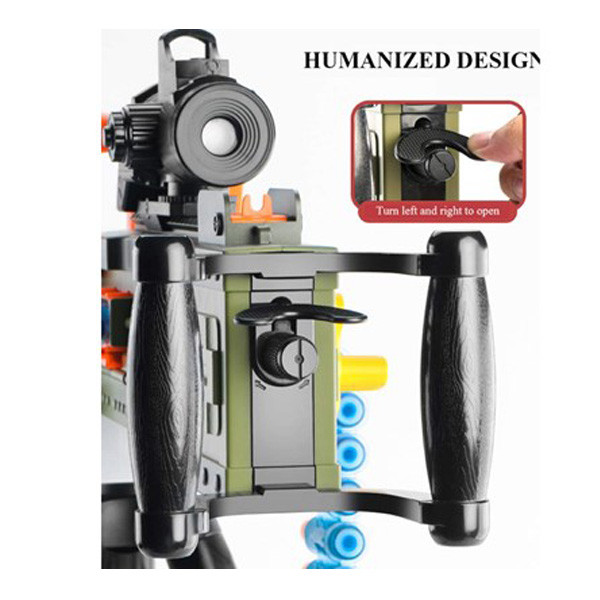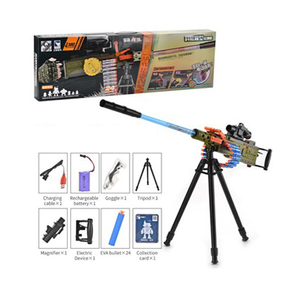 | اقلام همراه | دوربین _ یک عدد سه پایه_ یک عدد عینک _ باتری شارژی _ کابل شارژی_24 عدد تیر فومی_ یک عدد دستگیره_ یک عدد کالکشن کارت |