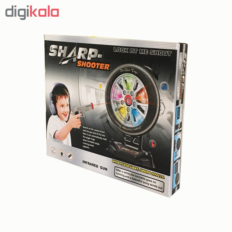 | سایر توضیحات | قابلیت تیر اندازی با اشعه اینفرارد در صورت تیراندازی صحیح و دقیق به سیبل، چرخ سیب موزیک پخش میکند جنس تفنگ و سیبل پلاستیکی است |