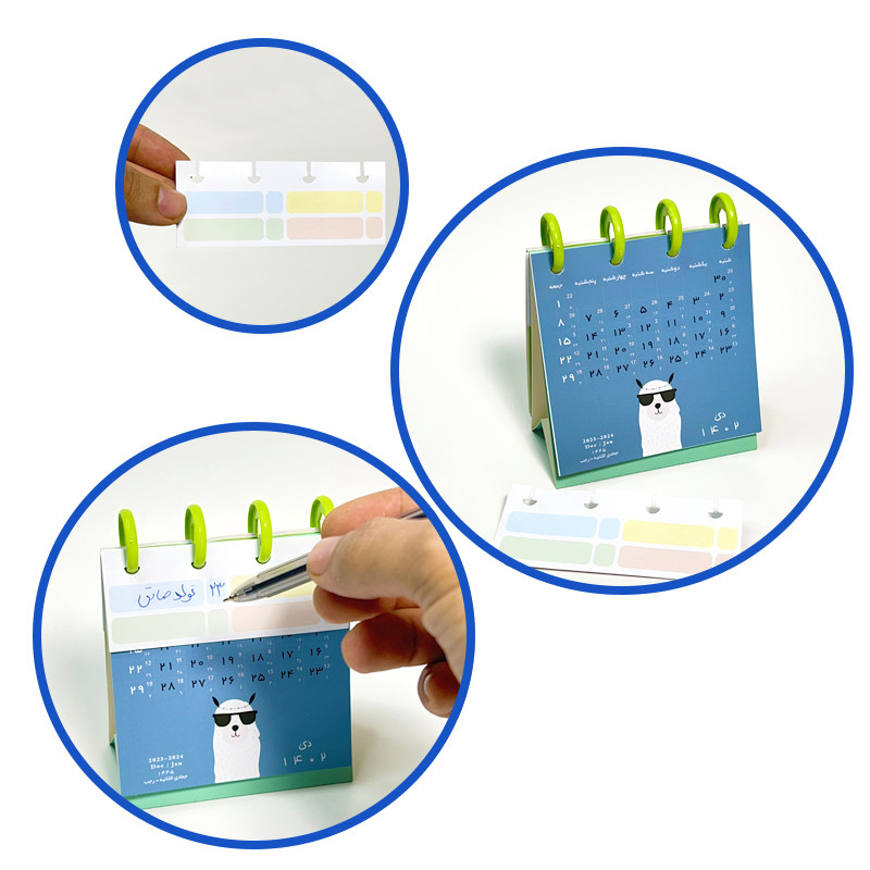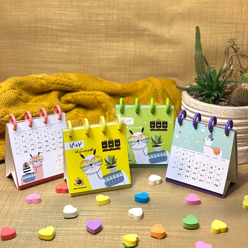تقویم رومیزی سال 1402 یاس آکام امسال با دیسک های رنگی و مدل های فانتزی و مختلفی ارائه شده اند . سایز این تقویم ها 9.5 در 10.5 سانتی متر است که برگه های گلاسه رنگی مخصوص هر ماه طراحی شده اند. پشت برگ هر ماه نیز مناسبت های آن ماه درج شده است. قابلیت جالب این تقویم جدا کردن برگه ها و مجددا اضافه کردن آن است. همچنین این تقویم دارای برگ هایی برای نوشتن مناسبت های خاص شخصیتان همچون تولد ، قرار ملاقات یا ... است. که می توانید روی هر ماه جایگذاری کنید.