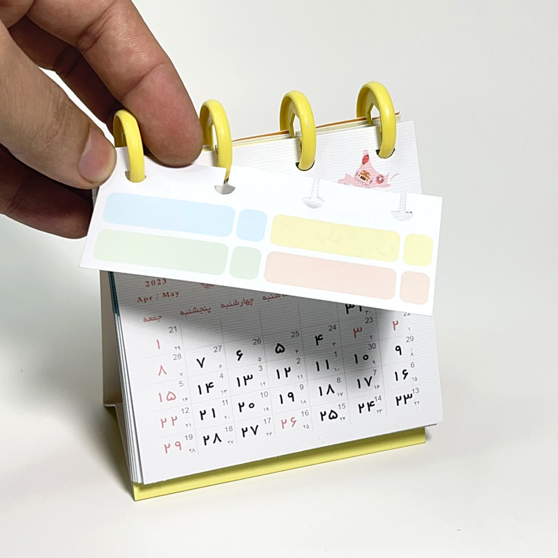 تقویم رومیزی سال 1402 یاس آکام امسال با دیسک های رنگی و مدل های فانتزی و مختلفی ارائه شده اند . سایز این تقویم ها 9.5 در 10.5 سانتی متر است که برگه های گلاسه رنگی مخصوص هر ماه طراحی شده اند. پشت برگ هر ماه نیز مناسبت های آن ماه درج شده است. قابلیت جالب این تقویم جدا کردن برگه ها و مجددا اضافه کردن آن است. همچنین این تقویم دارای برگ هایی برای نوشتن مناسبت های خاص شخصیتان همچون تولد ، قرار ملاقات یا ... است. که می توانید روی هر ماه جایگذاری کنید.
