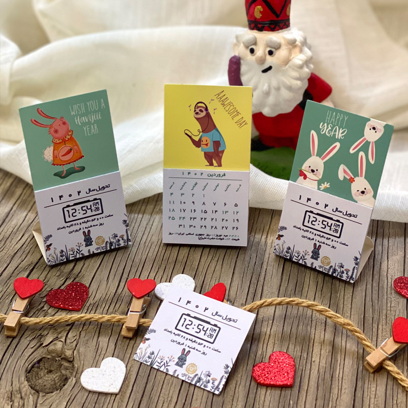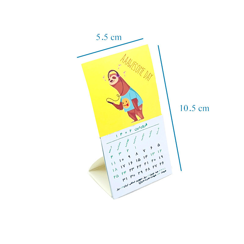 تقویم رومیزی 1402 مینی یاس آکام در سایز 10.5 × 5.5 سانتی متر یک تقویم مینی رومیزی با طرح های فانتزی می باشد و تعطیلات رسمی هر ماه هم زیر آن ماه ذکر شده است. با تمام شدن هرماه برگه مخصوص ماه تمام شده را جدا میکنید.
