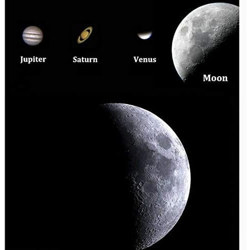 | سایر قابلیتها | این تلسکوپ امکان مشاهده دقیق سیاراتی مانند مشتری و قمرهای آن، حلقههای زحل، خوشههای ستارهای، سطح ماه و بسیاری از اجرام آسمانی دیگر را فراهم میکند. این تلسکوپ برای رصد ماه و ستارگان، عکاسی با موبایل، آموزش نجوم مناسب میباشد - مجهز به هولدر موبایل و ریموت بلوتوثی برای عکاسی حرفهای و بدون لرزش از اجرام آسمانی - مجهز به فیلتر ماه، لنز مستقیمکننده و سه عدسی چشمی با کاربردهای مختلف - |