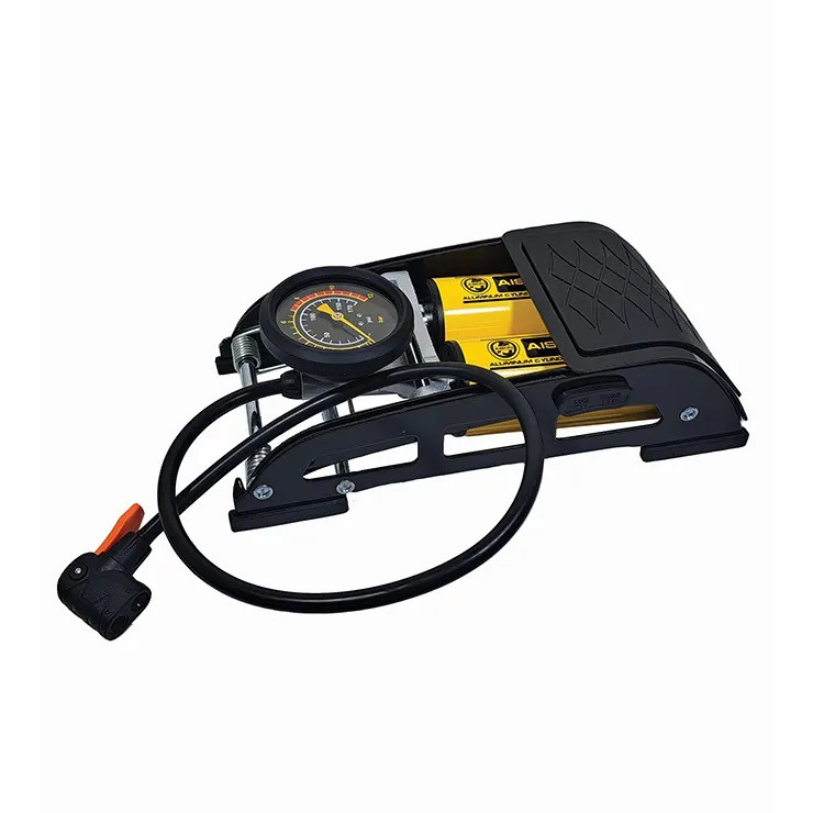 تلمبه پایی دوسیلندر سوپر آیسون مدل AL-A1030 جهت باد کردن انواع وسایل بادی استفاده می شود. این تلمبه از نوع پدالی می باشد از ویژگیهای خاص این تلمبه می توان به پایه پهن تولید شده از مقاوم ترین متریال پلاستیک جهت ایستایی بهتر و گیج بزرگ سه اینچ (8 سانتیمتر) با طراحی منحصر به فرد و کاور پلاستیکی محافظ اشاره نمود. بر روی پدال و پایه این تلمبه یک روکش نرم و طرحدار ضد لغزش تهبیه شده است. پوشش سیلندرهای این تلمبه از جنس آلومینیوم و محورها و فریم آن از فولاد استیل ضد زنگ ساخته شده است. محفظه خروجی هوای تلمبه پایی دوسیلندر آیسون از جنس دایکاست آلومینیوم بسیار با دوام ساخته شده است. این تلمبه دارای یک شیلنگ 65 سانتیمتری با دوام و ساخته شده از مرغوبترین متریال می باشد.
