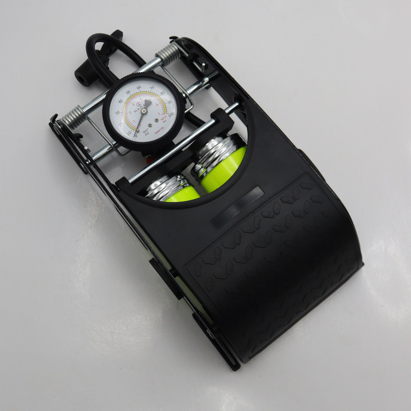 | سایر توضیحات | - تلمبه بادی مدار - گیج با دو درجه بندی Bar ، PSI - یستم قفل پدال جهت نگهداری آسانتر - دارای دو مخزن هوا با ظرفیت 450 سی سی - دارای سوزن باد - طراحی پیستون به جای میله جهت مقاومت و قدرت بیشتر و کارایی بالاتر - شلنگ با دوام و انعطاف پذیر - پدال لاستیکی آجدار ضد لغزش - سیلندر تمام استیل - نازل باد کردن چرخ اتومبیل،موتورسیکلت، دوچرخه و انواع توپ - کیفیت بالا |