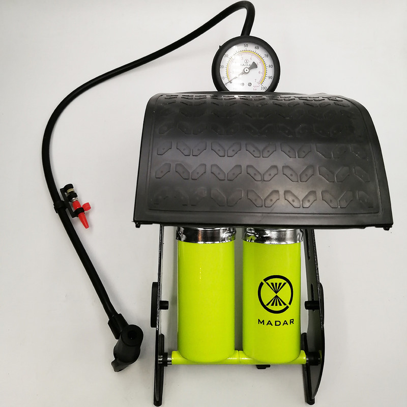 | سایر توضیحات | - گیج با دو درجه بندی Bar ، PSI - سیستم قفل پدال جهت نگهداری آسانتر - دارای دو مخزن هوا با ظرفیت 450 سی سی -طراحی پیستون به جای میله جهت مقاومت و قدرت بیشتر و کارایی بالاتر -شلنگ با دوام و انعطاف پذیر - پدال لاستیکی آجدار ضد لغزش - سیلندر تمام استیل نازل باد کردن چرخ اتومبیل،موتورسیکلت، دوچرخه و انواع توپ |