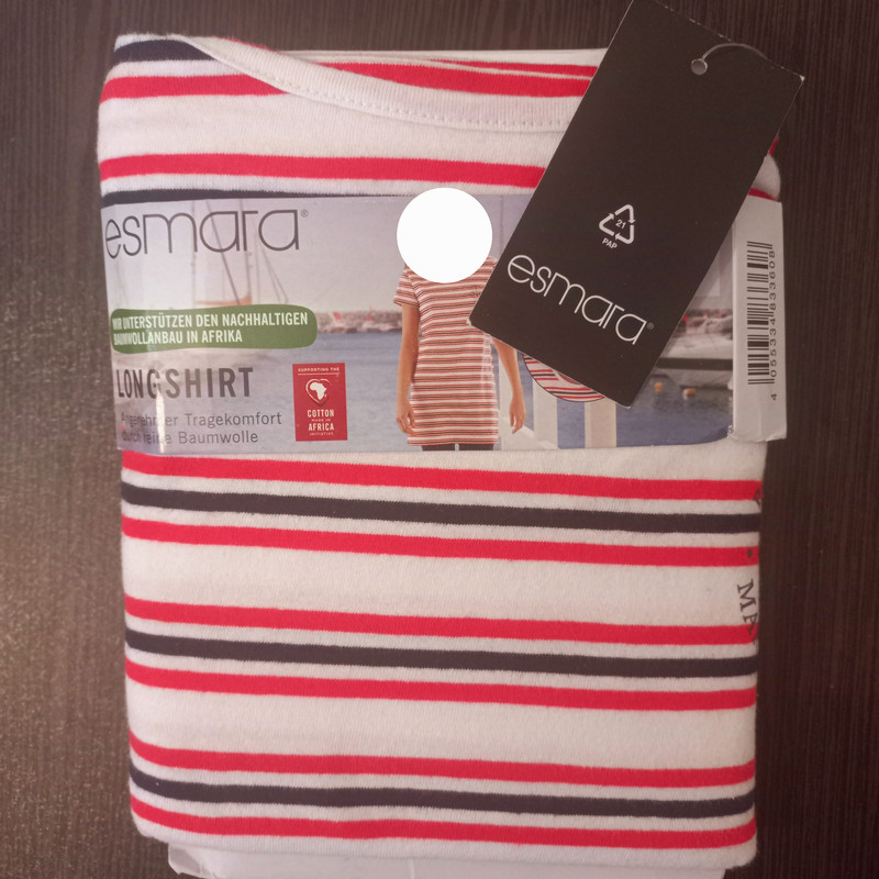 برند esmara از مجموعه تولیدات شرکت Lidlآلمان می باشد که به صورت تخصصی پوشاک زنانه تولید مینماید.جنس بسیاری از لباس های تولیدی این برند از 100 درصد پنبه است که توانسته گواهی OEKO_TEX را که از جمله معتبرترین گواهینامه های کیفی اروپا می باشد را تصاحب کند. تیشرت زنانه اسمارا آمیخته ای از 95 درصد نخ و پنبه و 5 درصد الاستین می باشد و چون بر چسب کیفیت دارد هیچگونه حساسیتی ایجاد نمی کند. لازم به توضیح است سایزبندی این لباس بر اساس سایزهای اروپایی یورو ( EUR ) می باشد و نوع استایل اصلی در عکس ها نشات دهنده جذب یا آزاد و یا بلند و کوتاه بودن لباس است . در کل سایز لباس های ایرانی نسبت به سایزهای آلمانی ( EUR ) در اکثر مواقع یکی نیست. به طور کلی برای انتخاب لباس آلمانی شما باید یک سایز از سایز لباس ایرانی خود را کم کنید به عنوان مثال اگر در سایز ایرانی XL می پوشید باید در سایز آلمانی L را انتخاب کنید حتما جدول تبدیل سایزهای ایرانی به آلمانی را در قسمت عکسها مطالعه بفرمایید