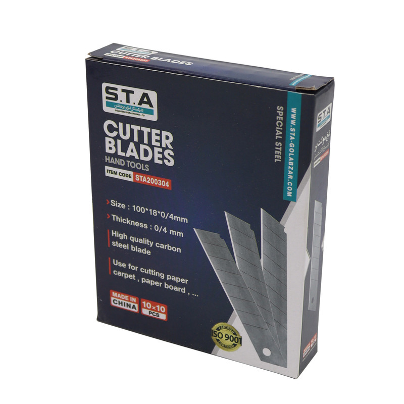 | سایر توضیحات | - تیغ کاتر 100 عددی اس تی ای - 10 بسته ده تایی داخل یک جعبه = 100 عدد - ابعاد تیغ : 100x18x0.4 میلیمتر - جنس: استنلس استیل مقاوم - با بسته بندی پلاستیکی مناسب - بسیار ظریف ضخامت تیغ 0.5 میلی متر - سطح با روکش مقاوم و ضد زنگ - مناسب برای برش های ظریف و دقیق و مناسب کاتر های بزرگ - حرارت داده شده با استفاده از آخرین فناوری ساخت تیغه - بسیار با دوام - کیفیت ساخت بالا |