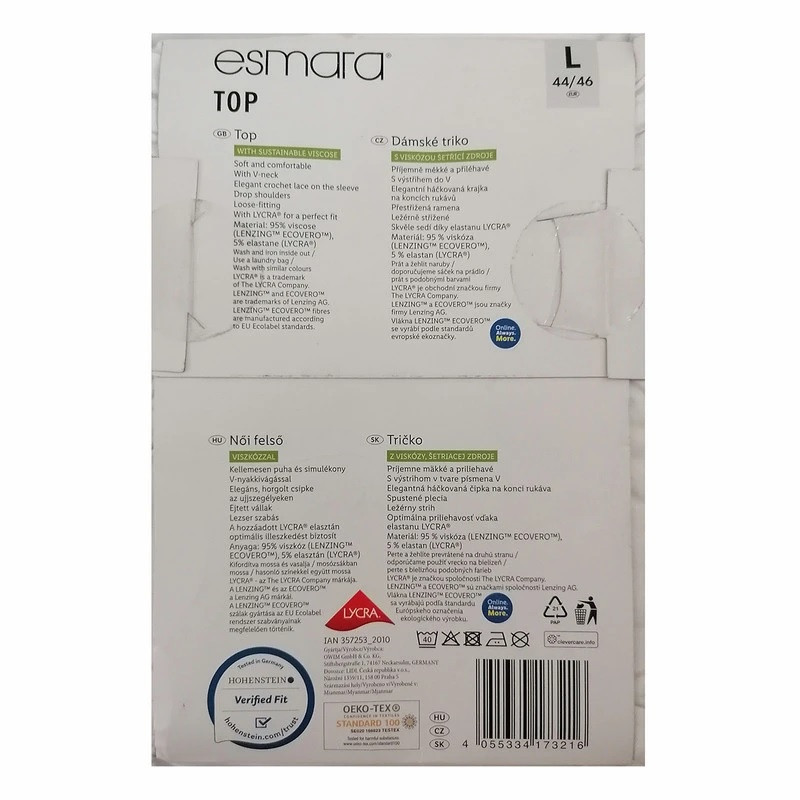 تیشرت زنانه اسمارا آمیخته ای از 95درصد ویسکوز و 5 درصد الاستین می باشد و چون بر چسب کیفیت دارد هیچگونه حساسیتی ایجاد نمی کند. لازم به توضیح است سایزبندی این لباس بر اساس سایزهای اروپایی یورو ( EUR ) می باشد و نوع استایل اصلی در عکس ها نشات دهنده جذب یا آزاد و یا بلند و کوتاه بودن لباس است . در کل سایز لباس های ایرانی نسبت به سایزهای آلمانی ( EUR ) در اکثر مواقع یکی نیست. به طور کلی برای انتخاب لباس آلمانی شما باید یک سایز از سایز لباس ایرانی خود را کم کنید به عنوان مثال اگر در سایز ایرانی XL می پوشید باید در سایز آلمانی L را انتخاب کنید حتما جدول تبدیل سایزهای ایرانی به آلمانی را در قسمت عکسها مطالعه بفرمایید...لطفا با رنگهای مشابه بشویید و از مواد شوینده رنگی استفاده کنید .