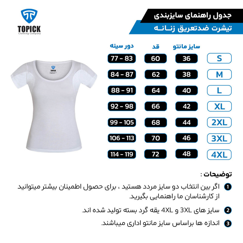 معیار سایزبندی تیشرت تاپیک، اندازه دور سینه است.