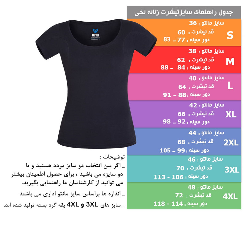 معیار سایزبندی تیشرت تاپیک، اندازه دور سینه است.
