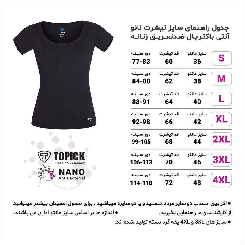 زیرپوش نانو آنتی باکتریال زنانه بصورت ضد باکتری و ضد تعریق و ضد لک و دارای لایه مـحافظ بسیار نازک با قابلیت جذب بسیار بالا و دارای تکنولوژی نانو برای از بین بردن بوی نامطبوع تا 95% میباشد وتماس پوست با زیرپوش 100% پنبه ای و ضدحساسیت رخ میدهد.