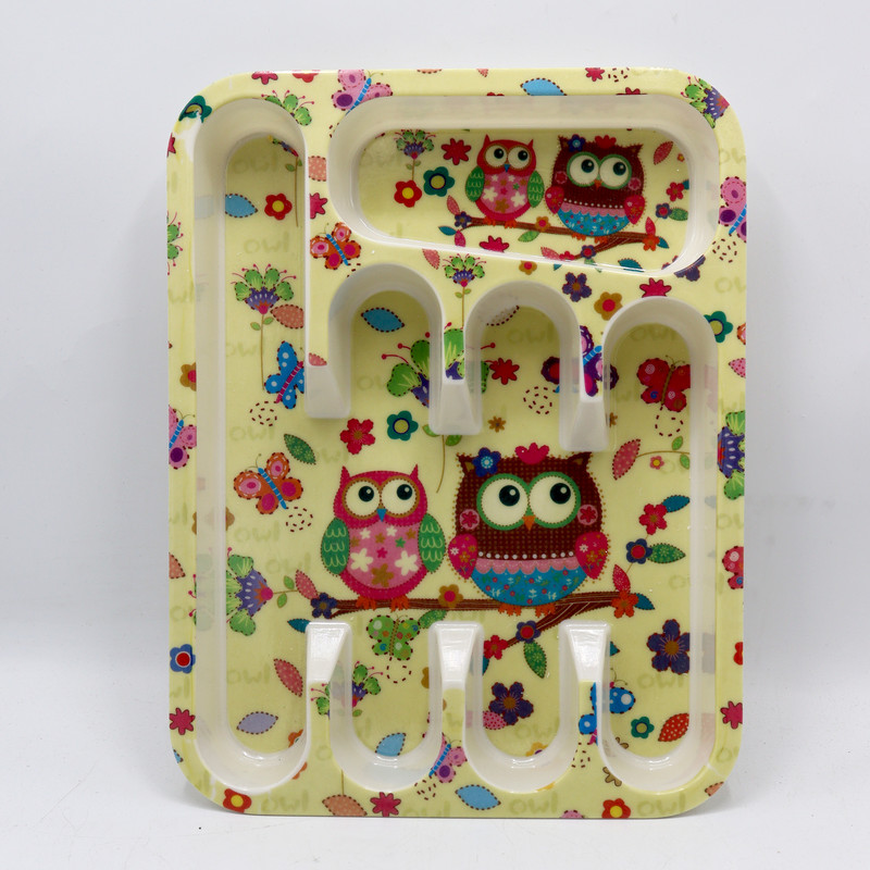 | سایر توضیحات | - جاقاشقی مدل جغد کد 3770 - مناسب برای قرار گیری در داخل کشو . روی میز . روی کابینت و .... - این جاقاشقی دارای 5 قسمت مجزا بوده که براحتی می توانید قاشق ، چنگال ، چاقو و... را از هم جدا کرده و در قسمت مخصوص خود قرار دهید - به دلیل مقاومتی که در برابر گرمای آب دارد با خیالی آسوده میتوانید آنرا درون ماشین ظرفشویی قرار دهید - جنس : ملامین - مقاومت بالا در برابر ضربه - ابعاد : 4x25x33 سانتیمتر - وزن : 515 گرم |
