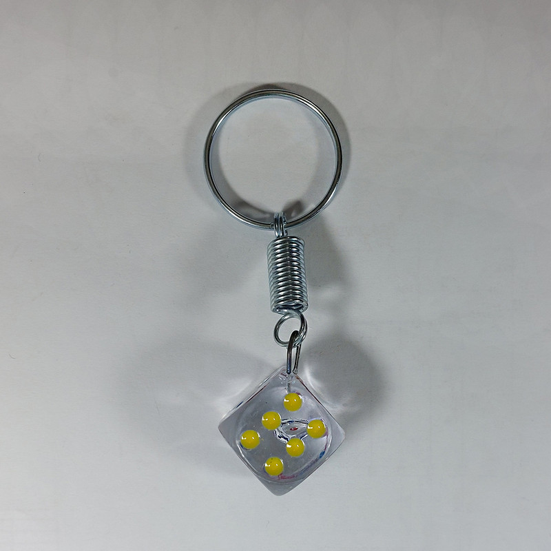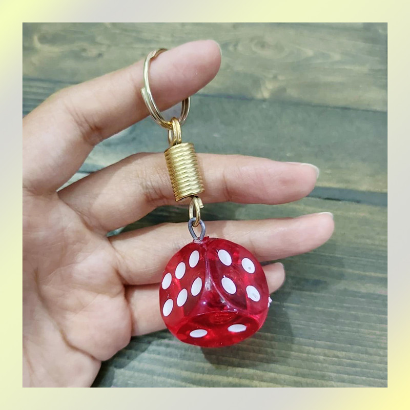 یکی از بهترین گزینه های هدیه برای تقدیم کردن به دوستان، جاسوئیچی های دست ساز می باشد. این جاسوئیچی طرح تاس از رزین تهیه شده، کاربردی و با کیفیت می باشد. ایعاد تاس در حدود 2x2x2 سانتی متر می باشد.