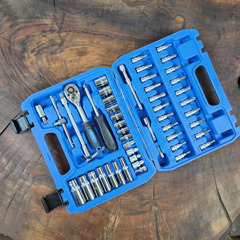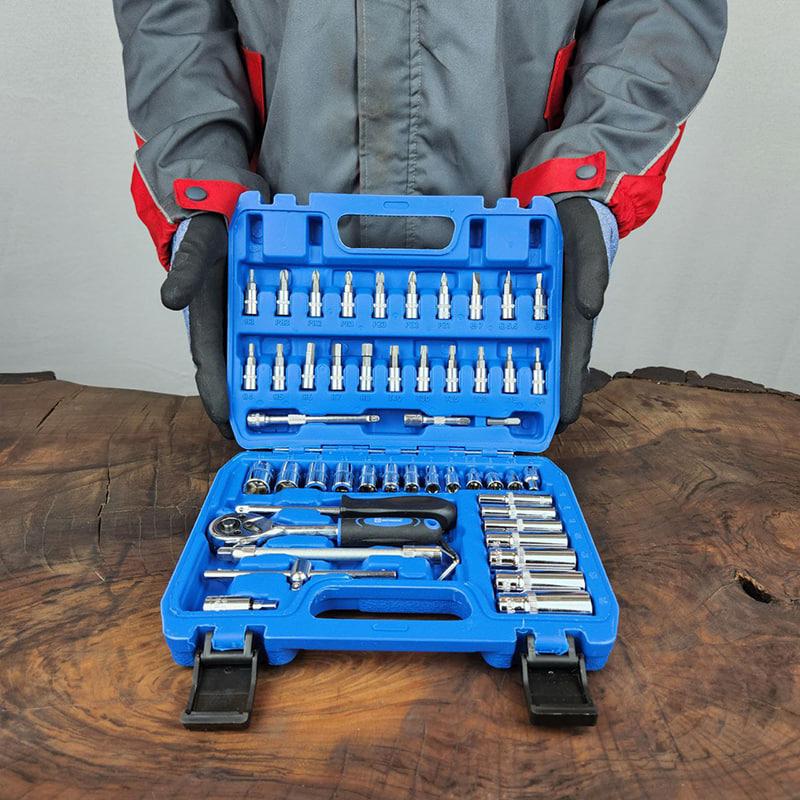 این جعبه بکس علاوه بر بکسها، شامل مجموعهای از ابزارهای کاربردی دیگر نیز هست: – سری آلن: برای کار با پیچهای آلن. – سری چهار سو و دو سو: مناسب برای پیچهای مختلف. – سری ستاره: برای کار با پیچهای ستارهای. – جغجغه 1/4 اینچ: که امکان باز و بسته کردن سریع پیچها را فراهم میکند. – دو عدد کمکی و یک عدد کمکی فنری: برای تسهیل در کار با بکسها و پیچها. این مجموعه کاملاً مناسب کارهای سبک و خانگی طراحی شده و میتواند به راحتی در هر خانه یا کارگاه کوچک مورد استفاده قرار گیرد. جعبه بکس 53 عددی: ابزاری کامل برای کارهای سبک و خانگی جعبه بکس 53 عددی یک انتخاب ایدهآل برای کسانی است که به دنبال ابزاری جامع و کاربردی برای انجام کارهای سبک و خانگی هستند. این مجموعه با ویژگیهای متنوع و کیفیت ساخت بالا، میتواند پاسخگوی نیازهای روزمره شما در تعمیرات و پروژههای کوچک باشد. مشخصات فنی : جعبه بکس مذکور شامل 13 عدد بکس کوتاه با سایزهای 4 تا 14 میلیمتر و 7 عدد بکس بلند با سایزهای 6 تا 14 میلیمتر میباشد. این تنوع در سایزها به شما این امکان را میدهد تا بتوانید به راحتی انواع پیچ و مهرهها را در پروژههای مختلف باز و بسته کنید. مزایا : – تنوع بالای ابزارها: این مجموعه با وجود 53 عدد ابزار، امکان انجام انواع کارها را فراهم میکند. – سبک و جمع و جور: طراحی جمع و جور این جعبه باعث میشود که بتوانید آن را به راحتی در فضای محدود نگهداری کنید و در صورت نیاز به راحتی حمل کنید. – قیمت مناسب: با توجه به امکانات گسترده این جعبه بکس، قیمت آن بسیار مقرون به صرفه است و ارزش خرید بالایی دارد.