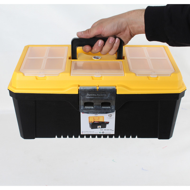 جعبه ابزار فوق یکی از انواع جعبههای ساده و محکمی است که میتوان در بازار یافت. شرکت «بابل» (Babol) این جعبه ابزار را تولید میکند و مدل آن «متال» نام دارد. این جعبه برای قرارگیری در صندوق عقب خودرو بسیار مناسب است و از سایزی مناسب بهره میبرد. این جعبه ابعادی برابر 18 × 20 × 40 سانتیمتر دارد.