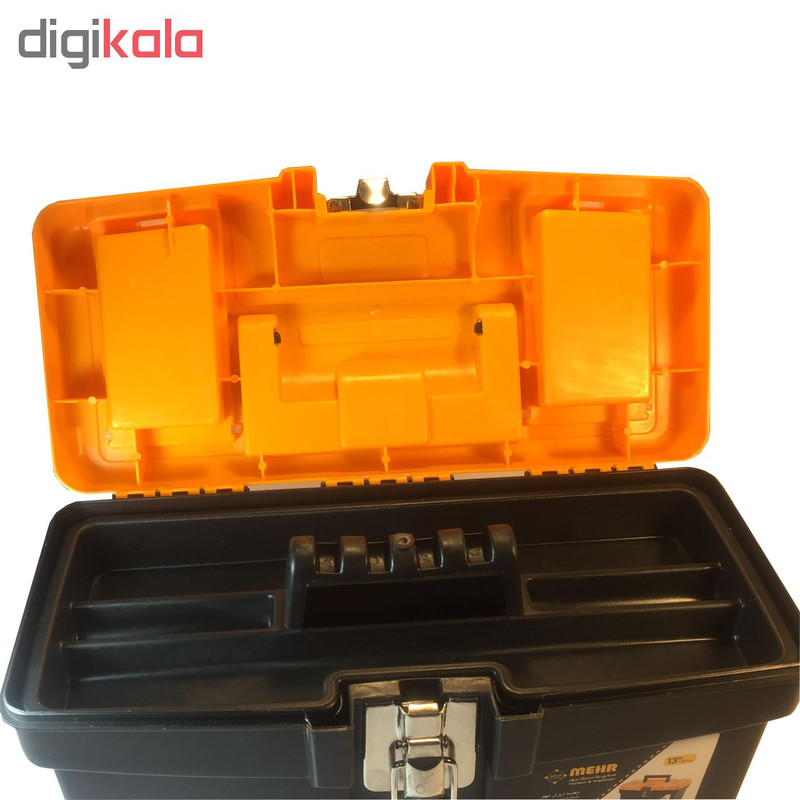 با این جعبه ابزار دیگر نگران گم شدن ابزارآلات خود نمی شوید و تمامی آن ها را میتوانید در این جعبه به خوبی جایگذاری ، نگهداری و حمل کنید .امروزه با تنوع ابزارآلات بیشمار نیاز به یک جعبه ابزار کامل و با کیفیت بیش از پیش احساس میشود و جعبه ابزارهای مهر با ابعادهای گوناگون و طراحی های مختلف نیاز شما را به خوبی برطرف خواهند کرد .جعبه ابزار مهر مدل JMT-16 توسط شرکت مهر Mehr که یک شرکت کاملا ایرانی است ، طراحی و تولید میشود و جعبه ابزاری با کیفیت و قیمت مناسب می باشد.این محصول ، تولید شده از پلاستیک فشرده ، محکم و نشکن می باشد .قسمت داخلی این جعبهابزار شامل 5 محفظه است. سینی پلاستیکی مجزایی که در بالای محفظهی اصلی قرار دارد، برای ابزارهای بلندی همچون انواع آچار و انبر مناسب است. علاوهبر مخزن اصلی این کیف ابزار، سه محفظهی کوچک و درپوش پلاستیکی روی درب جعبه، فضای مناسبی را در اختیار کاربر قرار میدهند. دو قفل فلزی در طرفین، استحکام بالایی به این جعبهابزار بخشیدهاند و دستهی تاشویی برای حمل راحتتر آن در قسمت بالایی تعبیه شده است.مجهز به دو قفل فلزی مقاوم و همچنین دارای طراحی ارگونومیک و منحصر به فرد ، از دیگر ویژگی های خوب این محصول به شمار میروند .جعبه ابزار مهر ، دارای یک سینی با قسمت های مجزا و دو محفظه روی درب است ، که برای پیچ و مهره و خورده ریز طراحی شده است.رنگ بدنه آن مشکی و رنگ درب نارنجی است و همچنین دسته قابلیت تاشدن روی درب را خواهد داشت .