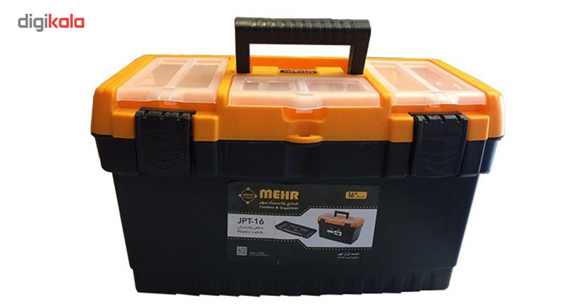 با این جعبه ابزار دیگر نگران گم شدن ابزارآلات خود نمی شوید و تمامی آن ها را میتوانید در این جعبه به خوبی جایگذاری ، نگهداری و حمل کنید .امروزه با تنوع ابزارآلات بیشمار نیاز به یک جعبه ابزار کامل و با کیفیت بیش از پیش احساس میشود و جعبه ابزارهای مهر با ابعادهای گوناگون و طراحی های مختلف نیاز شما را به خوبی برطرف خواهند کرد .جعبه ابزار مهر مدل JMT-16 توسط شرکت مهر Mehr که یک شرکت کاملا ایرانی است ، طراحی و تولید میشود و جعبه ابزاری با کیفیت و قیمت مناسب می باشد.این محصول ، تولید شده از پلاستیک فشرده ، محکم و نشکن می باشد .قسمت داخلی این جعبهابزار شامل 5 محفظه است. سینی پلاستیکی مجزایی که در بالای محفظهی اصلی قرار دارد، برای ابزارهای بلندی همچون انواع آچار و انبر مناسب است. علاوهبر مخزن اصلی این کیف ابزار، سه محفظهی کوچک و درپوش پلاستیکی روی درب جعبه، فضای مناسبی را در اختیار کاربر قرار میدهند. دو قفل فلزی در طرفین، استحکام بالایی به این جعبهابزار بخشیدهاند و دستهی تاشویی برای حمل راحتتر آن در قسمت بالایی تعبیه شده است.مجهز به دو قفل فلزی مقاوم و همچنین دارای طراحی ارگونومیک و منحصر به فرد ، از دیگر ویژگی های خوب این محصول به شمار میروند .جعبه ابزار مهر ، دارای یک سینی با قسمت های مجزا و دو محفظه روی درب است ، که برای پیچ و مهره و خورده ریز طراحی شده است.رنگ بدنه آن مشکی و رنگ درب نارنجی است و همچنین دسته قابلیت تاشدن روی درب را خواهد داشت .