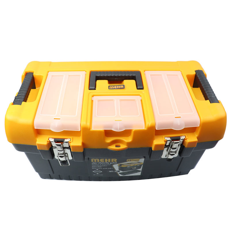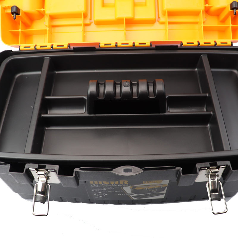 جعبه ابزار قفل دار مهر مدل MT22 که سایز 22 اینچ دارد، از با کیفیتترین و پرطرفدارترین جعبههای ابزار موجود در بازار است.این جعبه ابزار پلاستیکی از جنس پروپیلن (PP) ساخته شده است و مجموعا دارای 8 محفظه در ابعاد مختلف است. دلیل انتخاب این پلیمر در ساخت این جعبه ابزار، کیفیت مناسب، وزن سبک و همینطور ارزانتر بودن قیمت نهایی محصول در کنار قابل بازیافت بودن آن است که به شما کمک میکند تا بدون آسیب رساندن به محیط زیست، برای مدت زمان طولانی از این جعبه ابزار استفاده نمایید.