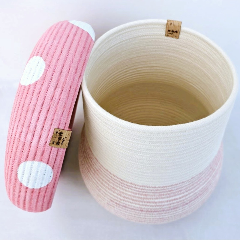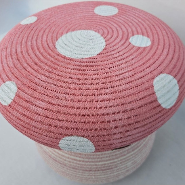 سبد اسباب بازی لالیپاپ مدل قارچ از ریسمان قیطان ساخته شده است. دوختی تمیز و محکم دارد و قابل شستشو در ماشین لباسشویی و یا با دست میباشد. در عین حال که نرم است ایستایی بالایی دارد.