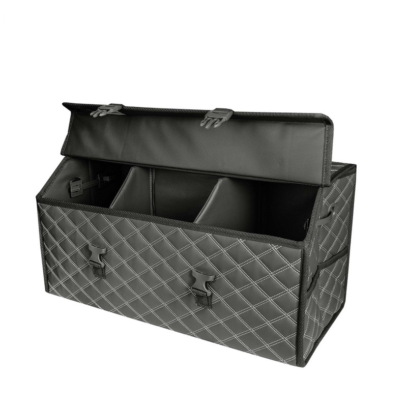 | سایر توضیحات | کیف نظم دهنده صندوق عقب خودرو صددرصد قابل شستشو می باشند. از آنجا که برای ایستادگی این نظم دهنده ها به جای کارتن های فشرده که در محصولات خارجی و داخلی استفاده از آن متداول است ورق های پلیمری استفاده می شود، در اثر رطوبت به هیچ وجه دچار افتادگی نمی شوند. |