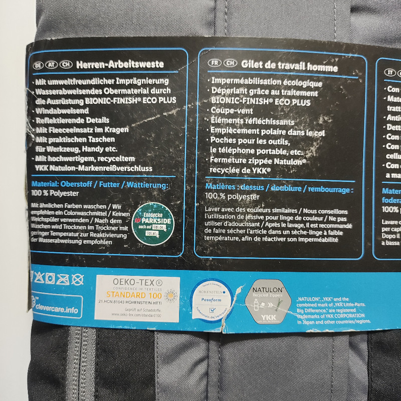 جلیقه مردانه پارکساید آمیخته ای از پلی استر می باشد و چون بر چسب کیفیت دارد هیچگونه حساسیتی ایجاد نمی کند. لازم به توضیح است سایزبندی این لباس بر اساس سایزهای اروپایی یورو ( EUR ) می باشد . در کل سایز لباس های ایرانی نسبت به سایزهای آلمانی ( EUR ) در اکثر مواقع یکی نیست ... به طور کلی برای انتخاب لباس آلمانی شما باید یک سایز از سایز لباس ایرانی خود را کم کنید ... به عنوان مثال اگر در سایز ایرانی XL می پوشید باید در سایز آلمانی L را انتخاب کنید ... حتما جدول تبدیل سایزهای ایرانی به آلمانی را در قسمت عکسها مطالعه بفرمایید...لطفا با رنگهای مشابه بشویید و از مواد شوینده رنگی استفاده کنید .