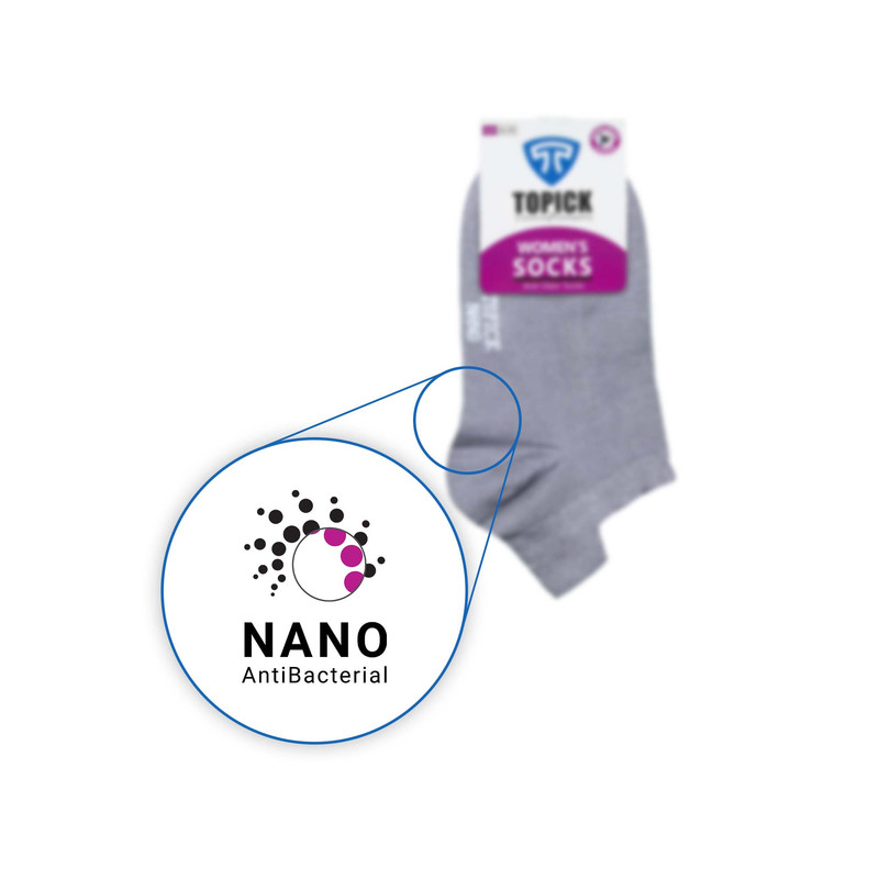 جوراب نانو دارای خاصیت آنتی باکتریال است به این معنا که مانع رشد و تکثیر باکتری های مولد بوی بد در پا می شود. جوراب نانو آنتی باکتریال درواقع به جوراب نانو ضد بو نیز شهرت یافته است. جوراب آنتی باکتریال دارای ذرات اکسید روی می باشد که خواص دیگری ازجمله خشک شوندگی سریع و جذب رطوبت بالا را دارد.