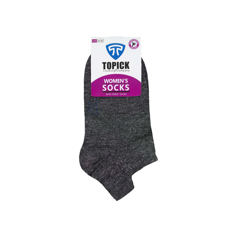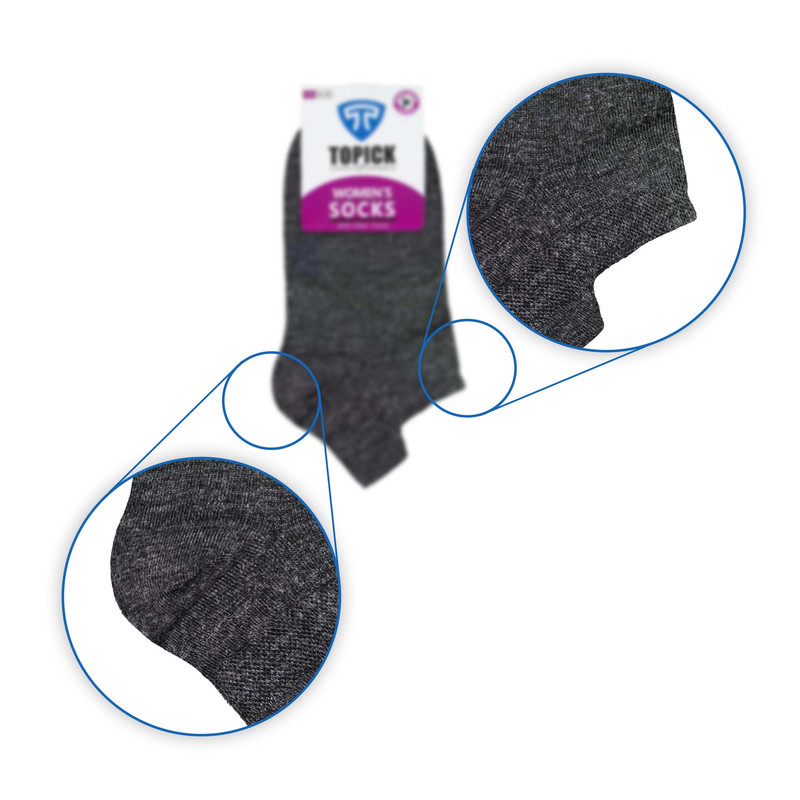 | توضیحات جنس | جوراب نانو ضد بو مچی سه پاشنه زنانه در بسته بندی سه عددی(رنگ:ملانژ تیره) ضد بو (از بین برنده بوی تعرق پا) ضد قارچ ضد باکتری (آنتی باکتریال) تراکم بالای الیاف (سابیده نمی شود) پنجه گیری شده کش دور ساق بادوام |