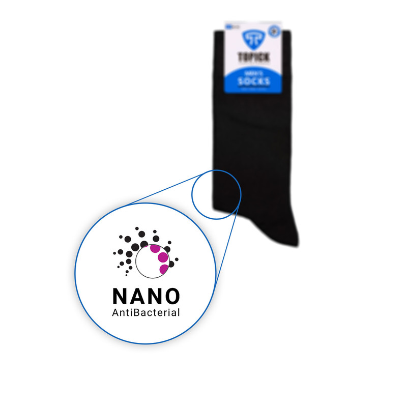 جوراب مردانه نانو تاپیک (بسته ۲ عددی) ساقدار مشکی با استفاده از فناوری نانو تولید شده و دارای خاصیت ضدبو، ضدقارچ و آنتیباکتریال است.