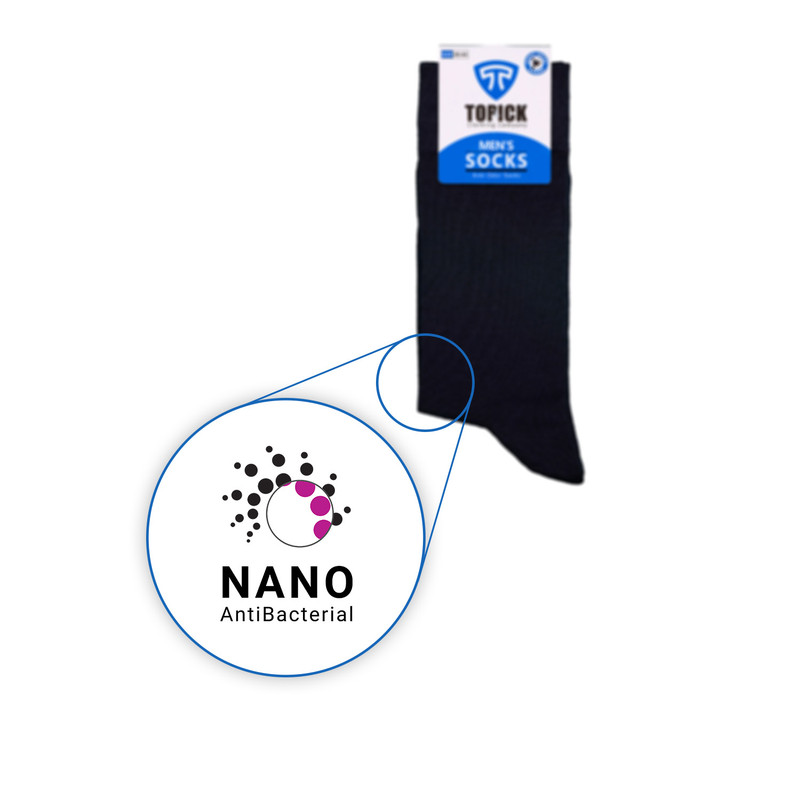 جوراب مردانه نانو تاپیک (بسته ۲ عددی) ساقدار سورمه ای با استفاده از فناوری نانو تولید شده و دارای خاصیت ضدبو، ضدقارچ و آنتیباکتریال است.