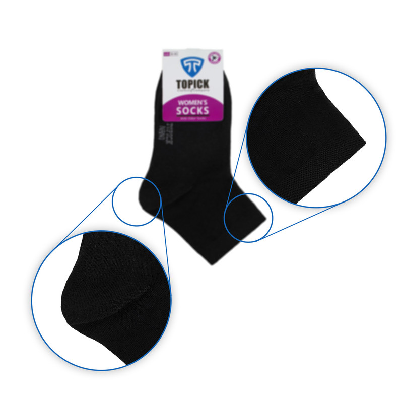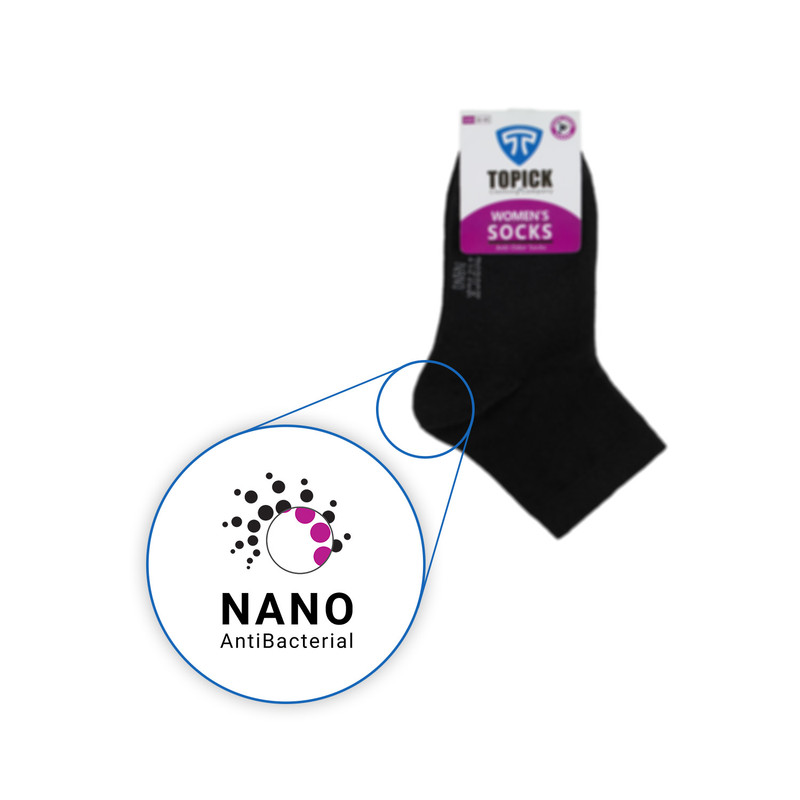 جوراب زنانه نانو تاپیک (بسته ۲ عددی) نیم ساق مشکی با استفاده از فناوری نانو تولید شده و دارای خاصیت ضدبو، ضدقارچ و آنتیباکتریال است.