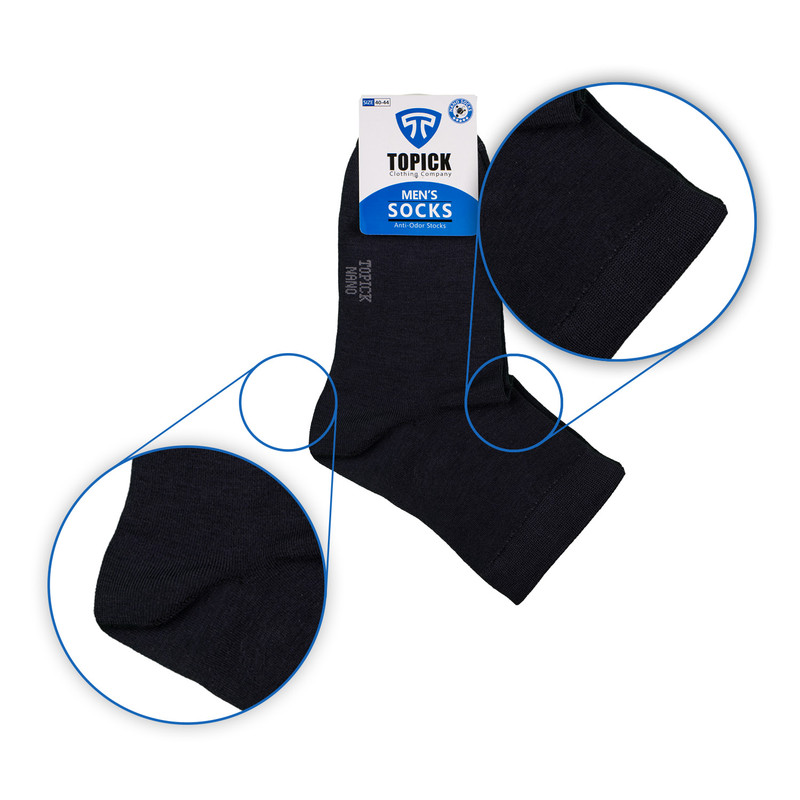 جوراب مردانه نانو تاپیک (بسته ۲ عددی) نیم ساق دودی با استفاده از فناوری نانو تولید شده و دارای خاصیت ضدبو، ضدقارچ و آنتیباکتریال است.