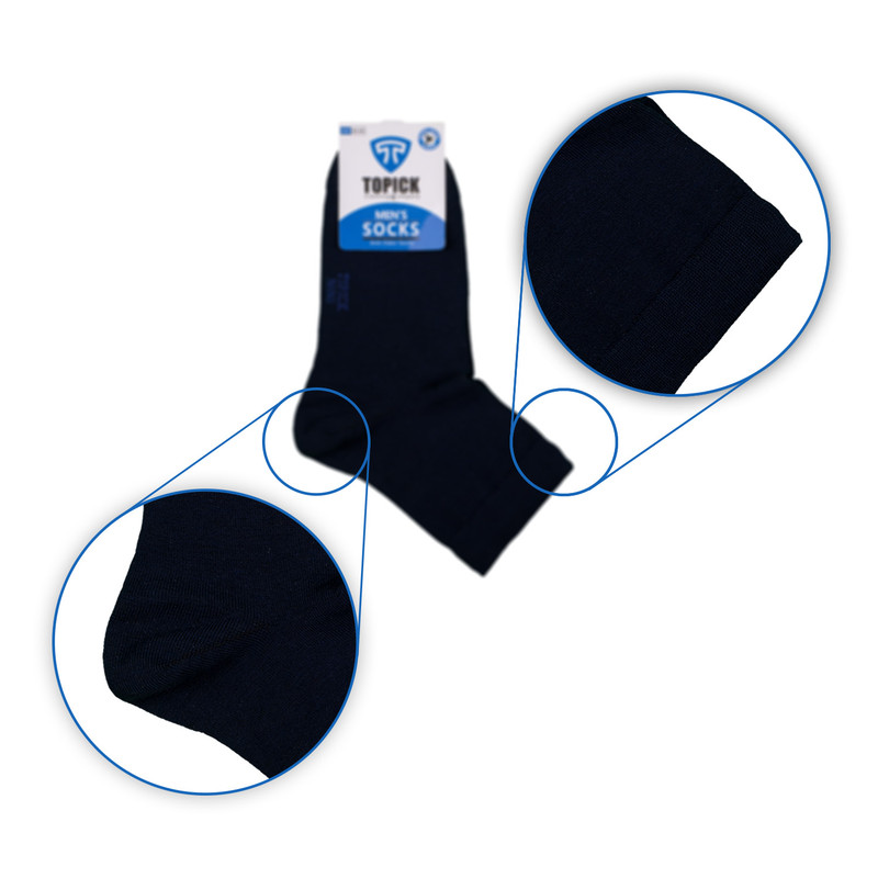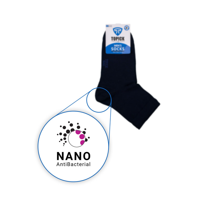 جوراب مردانه نانو تاپیک (بسته ۲ عددی) نیم ساق سورمه ای با استفاده از فناوری نانو تولید شده و دارای خاصیت ضدبو، ضدقارچ و آنتیباکتریال است.