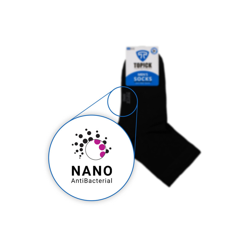 جوراب نانو دارای خاصیت آنتی باکتریال است به این معنا که مانع رشد و تکثیر باکتری های مولد بوی بد در پا می شود. جوراب نانو آنتی باکتریال درواقع به جوراب نانو ضد بو نیز شهرت یافته است. جوراب آنتی باکتریال دارای ذرات اکسید روی می باشد که خواص دیگری ازجمله خشک شوندگی سریع و جذب رطوبت بالا را دارد.