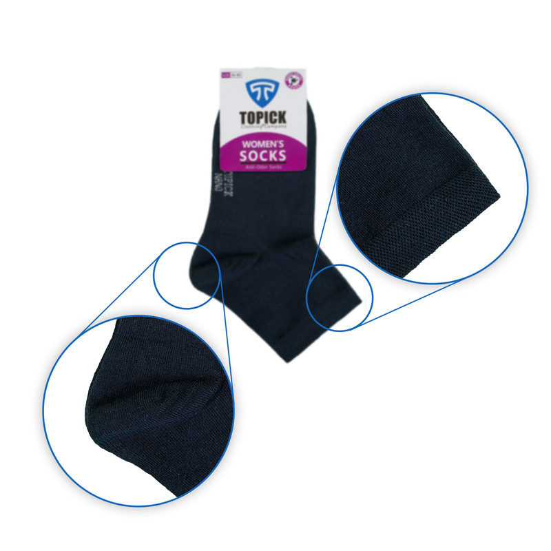 جوراب زنانه نانو تاپیک (بسته 2 عددی) نیم ساق با استفاده از فناوری نانو تولید شده و دارای خاصیت ضدبو، ضدقارچ و آنتیباکتریال است.