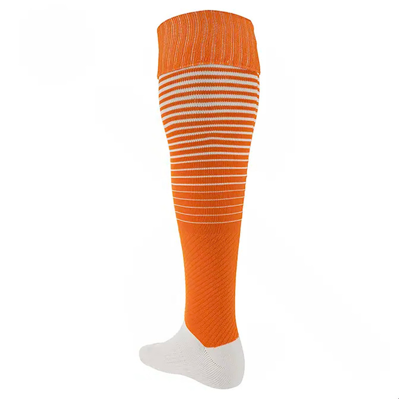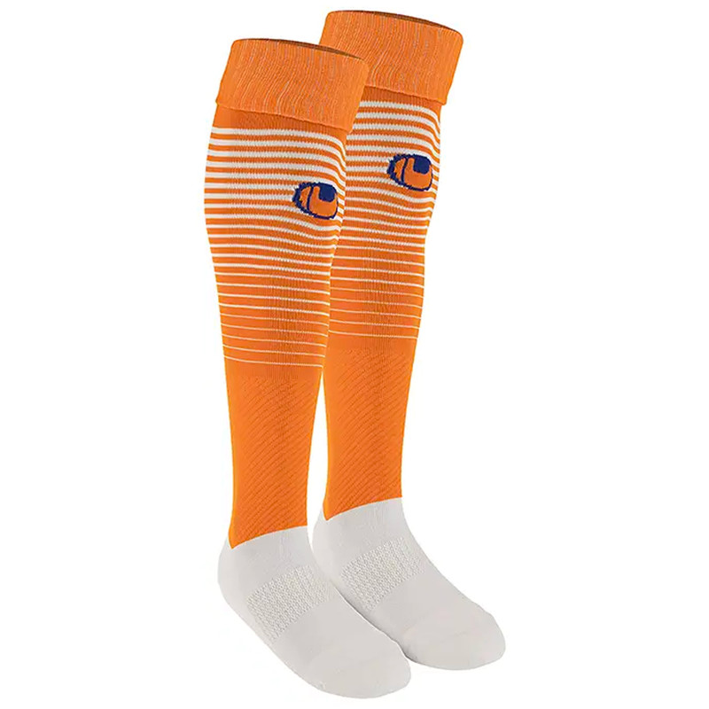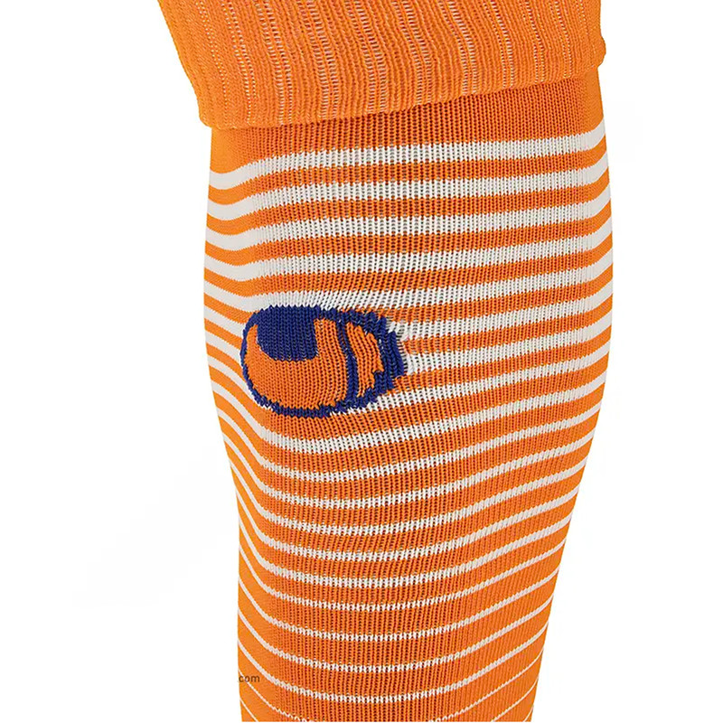 جوراب فوتبال ساق بلند آلشپرت یک جوراب ایده آل برای فوتبالیست های حرفه ای است که به دنبال یک تناسب راحت و سریع هستند. این جورابها دارای قابلیت انعطاف و کشسانی بالایی هستند به گونه ای که حداکثر سازگاری با محافظ های ساق پا را دارند و به خوبی این گاردها را در خود جای می دهند. جنس این محصول از ترکیب الیاف پلی استر، نخ و پنبه است که یک ترکیب فوق العاده نرم و لطیف می باشد. کشبافت های موجود در ناحیه ی ساق پا و زیر مچ پا برای ایجاد بهترین تناسب تعبیه شده اند. کف این جوراب دارای جنس حوله ای است که با ایجاد حالت بالشتکی از کف پاها در برابر فشار ناشی از ضربات کفش محافظت می کند و مانع از تاول زدن و سایش پاها می شود. به منظور افزایش دوام و جلوگیری از پاره شدن زودرس جوراب در نواحی پنجه و پاشنه پا، که بیشترین فشار را متحمل می شوند از لایه های تقویت شده استفاده شده است. طراحی این جوراب کاملاً متناسب با آناتومی پای راست و چپ می باشد و به همین علت هر لنگه جوراب به صورت منحصر به فرد طراحی و تولید شده است. کشبافت انتهای جوراب دارای تراکم بسیار مناسب است و در اثر شسته شدن فرم خود را حفظ می کند و شل نمی شود. قابلیت تنفسی و گردش هوای جوراب فوتبال آلشپرت، مانع از تعریق و بوی بد پاها می شود. وجود لوگوی آلشپرت بر روی این جوراب نشان از کیفیت و کارایی بهینه این محصول دارد.