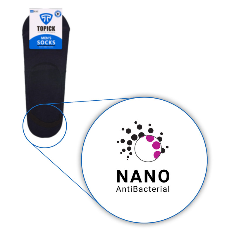 جوراب مردانه نانو تاپیک (بسته ۲ عددی) کالجی سورمه ای با استفاده از فناوری نانو تولید شده و دارای خاصیت ضدبو، ضدقارچ و آنتیباکتریال است.