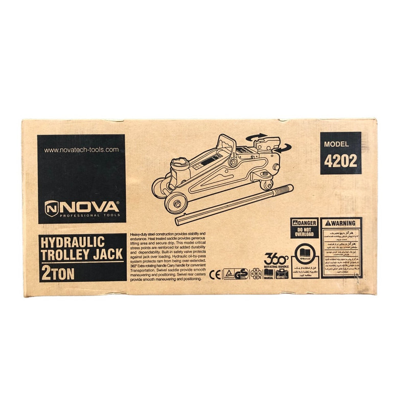 | سایر توضیحات | بدنه ساخته شده از بهترین متریال فولاد با استقامت بالا تولید بازوی بالابر به روش سخت کاری شده با حرارت دارای سوپاپ ایمنی جهت محافظت جک در برابر افزایش بار بیش از حد دسته گردان با قابلیت چرخش 360 درجه دسته پلاستیکی جهت حمل و نقل آسان جک پیستون و سیلندر های پولیش شده و آبکاری شده با کروم دارای خرک گردان چرخ های بزرگ و بادوام با قابلیت چرخشی برای چرخ های عقب دارای کیف BMC مقاوم حداقل ارتفاع : 140 میلیمتر حداکثر ارتفاع : 340 میلیمتر |