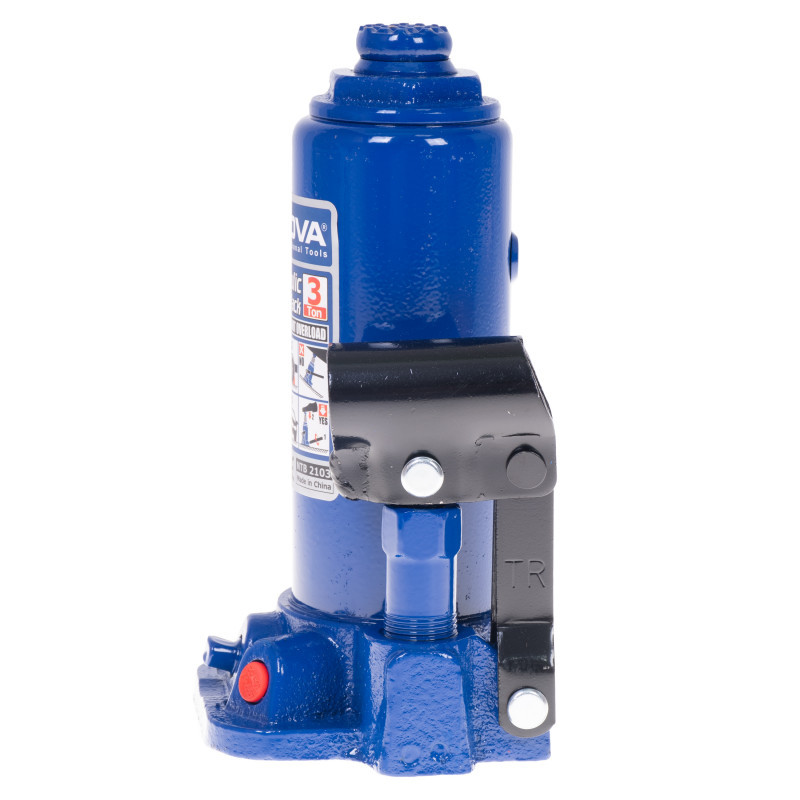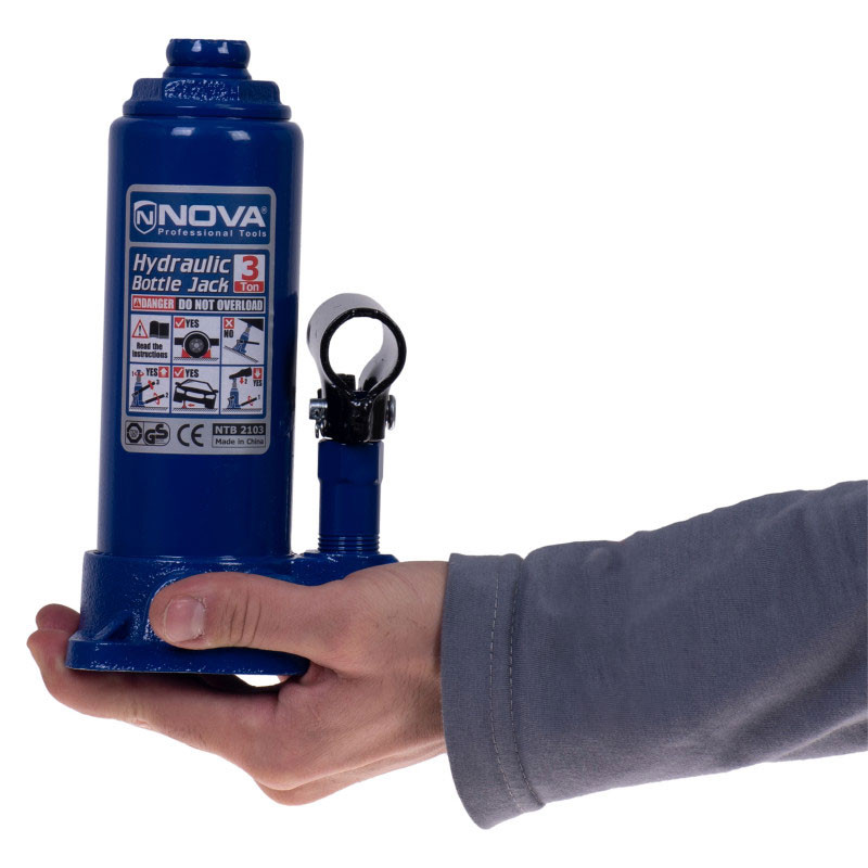 جک ها از لوازم جانبی ضروری در تعمیرگاه ها هستند که انواع مختلفی دارند و برای بلند کردن انواع خودرو ، جهت انجام امور تعمیراتی مورد استفاده قرار میگیرند. جک ها در مدل های مختلف با ظرفیت های مختلفی در بازار موجود هستند. یکی از پرکاربردترین جک ها جک روغنی یا جک هیدرولیک است که در خودروهای مختلف از لوازم ضروری آنها به شمار میرود.جک هیدرولیک خودرو نووا مدل ntb-2103 ، یک جک روغنی استوانهای است که برای بلند کردن انواع خودرو تا وزن حداکثر 3 تن ظرفیت دارد.این جک به اهرم دو تکه برای باز و بسته کردن مجهز شده است و پایهی آن جهت حفظ تعادل و جلوگیری از لغزش جک در هنگام بالا بردن خودرو ، به صورت پهن و با استحکام و مقاومت بالایی ساخته شده است.تمام نقاط بحرانی و تنش زای این جک دستی جهت افزایش کارایی و ایمنی تقویت شده است.حداقل ارتفاع این جک 194 میلیمتر ، ارتفاع بالابری آن 118 میلیمتر است و به پیچ تنظیم کنندهای به اندازهی 60 میلیمتر مجهز شده است. این پیچ بسیار روان ، مستحکم و مقاوم طراحی شده است. حداکثر ارتفاع این جک نووا برابر با 372 میلیمتر است.دو دسته و اهرم اضافه شونده به طول 17 سانتیمتر در بسته بندی این دستگاه قرار داده شده است.این جک با ظرفیت 3 تنی خود برای فعالیت های سنگین صنعتی در مدت زیاد بسیار مناسب و کاراست