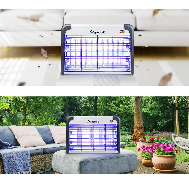 سایر ویژگی‌ها حشره‌کش Aspectek 20W، حشره‌کشی بی‌نظیر برای از بین بردن حشرات مزاحم: دستگاه دفع حشرات اسپکتک که مجهز به فناوری پیشرفته است، یک منبع نور UV قدرتمند را با یک شبکه الکتریکی ترکیب می‌کند تا حشرات پرنده را جذب و از بین ببرد. جذب و ریشه‌کنی فوری حشرات: این دستگاه دفع حشرات، طول موج ۳۶۵ نانومتر منتشر می‌کند که از نظر علمی ثابت شده است برای حشرات بسیار جذاب است، زیرا در محدوده طول موج طبیعی دید آنها قرار می‌گیرد. از آنجایی که مگس‌ها، پشه‌ها و هر حشره پرنده دیگری نمی‌توانند در برابر نزدیک شدن به منبع نور مقاومت کنند، بلافاصله دفع می‌شوند. شبکه قدرتمند ۲۸۰۰ ولت: این قوی‌ترین حشره‌کش موجود در بازار است. جرات کنید آن را با حشره‌کش‌های ضعیف‌تر و بی‌اثر رقبای ما مقایسه کنید. حشره‌کش Aspectek تضمین می‌کند که تمام آفات پرنده مضر را از بین می‌برد و شما را از صرف هزینه اضافی برای دافع حشرات یا سایر محصولات کنترل آفات حشرات باز می‌دارد. کنترل راحت آفات: دیگر خود و خانواده‌تان را در معرض مواد مضر قرار ندهید. این حشره‌کش برقی، جایگزین راحت و مفیدی برای کنترل آفات است و استفاده از آن در هر محیط داخلی با مشکل هجوم شدید آفات پرنده، ایمن است. ایده‌آل برای تمام محیط‌های داخلی: فوق‌العاده ایمن و مطمئن برای استفاده در هر فضای خانه و همچنین بیمارستان‌ها، محل‌های کار، فضاهای تجاری مانند آشپزخانه‌های رستوران‌ها، انبارها و فروشگاه‌های خرده‌فروشی. برای استفاده در فضای باز مناسب نیست نگهداری آسان: سینی پلاستیکی قابل جابجایی در پایین دستگاه، حشرات مرده را جمع آوری می‌کند و قابل شستشو است تا نگهداری سریع و ساده شود. شبکه برق خود تمیز شونده است.