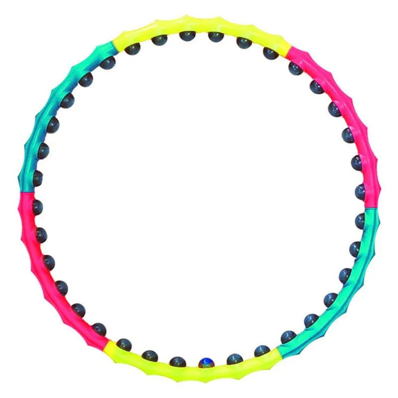 حلقه ی هولاهوپ با ظاهری زیبا و رنگارنگ طراحی بسیار چشمگیر و زیبایی دارد. این حلقه دارای 36 عدد برجستگی ژله ای می باشد که در حین چرخش ضرباتی به چربی های شکم و پهلو وارد کرده و چربی سوزی را برایتان آسان تر می کند. ویژگی دیگر این محصول پازلی بودن آن است. به این معنی که این محصول از 6 قسمت مجزا تولید شده که مثل پازل به هم وصل می شوند و برای جابه جایی به ابعاد کوچک در می آید و حمل محصول را برایتان راحت می کند. قطر این حلقه هولاهوپ 90 سانتی متر می باشد.