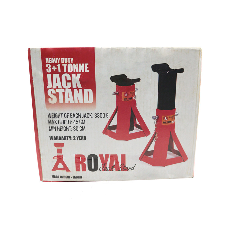 | سایر توضیحات | - خرک خودرو رویال مجموعه 2 عددی - حداکثر ظرفیت : 3 تن - کمترین ارتفاع : 30 سانتی متر - بیشترین ارتفاع : 42 سانتی متر - با ورق ضخیم - وزن : 3.300 کیلو گرم - بدنه رنگ کوره ای زرد ، محور وسط رنگ کوره نقره ای - تمامی برش ها و جوشکاری ها با نهایت دقت و کیفیت انجام شده است. - کیفیت بالا |