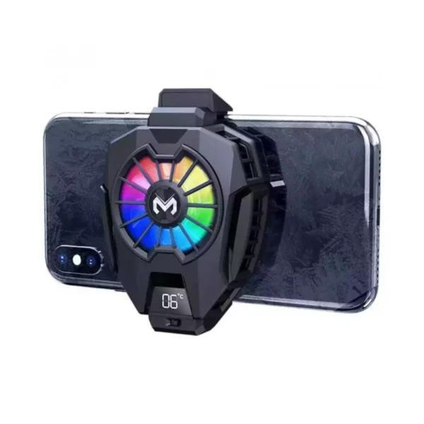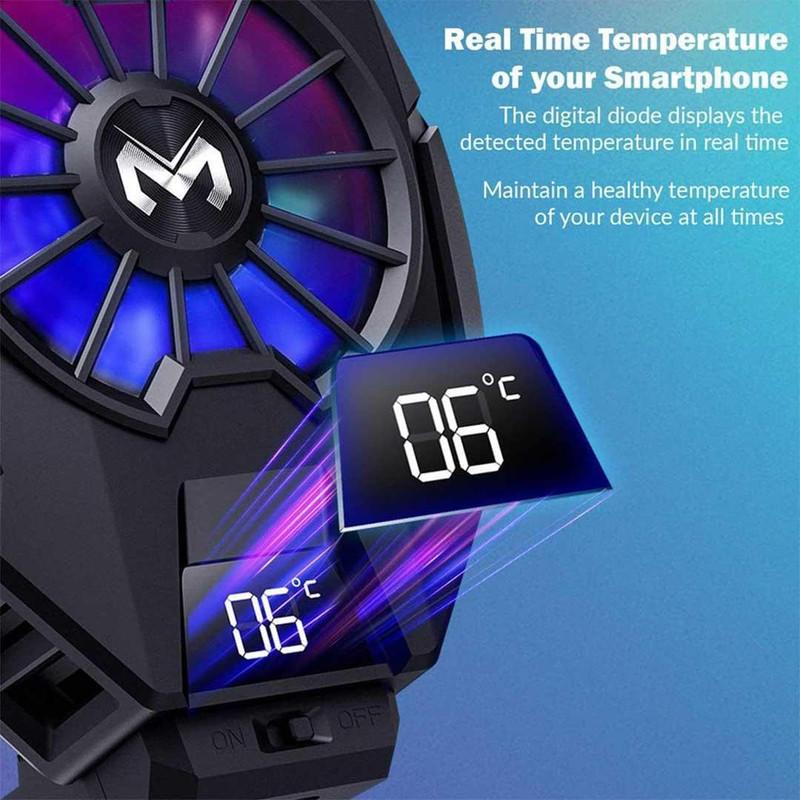 فن memo dl05 یک خنک کننده رادیاتوری موبایل میباشد که دارای دماسنج دیجیتالی برای نشان دادن دمای گوشی شما می باشد. این فن دارای LED های RGB نیز می باشد. بر روی این فن دکمه سوییچ روشن خاموش نیز تعبیه شده است. این فن دارای باطری داخلی نبوده و از برق مستقیم پاوربانک یا کلگی تغزیه می کند.