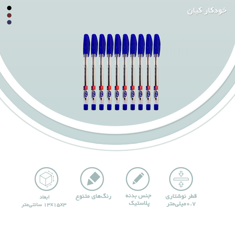 | سایر توضیحات | - بسته شامل 10 عدد خودکار نوک 0.7 میل - OBG) Oil Base Gel) جوهر نسل سوم خودکارها - نوشتاری تمیز در عین روان بودن و راحتی - بدون ریزش جوهر هنگام مصرف - همخوانی مناسب با نگارش فارسی - از لحاظ اقلیمی مناسب با آب و هوای متنوع ایران |