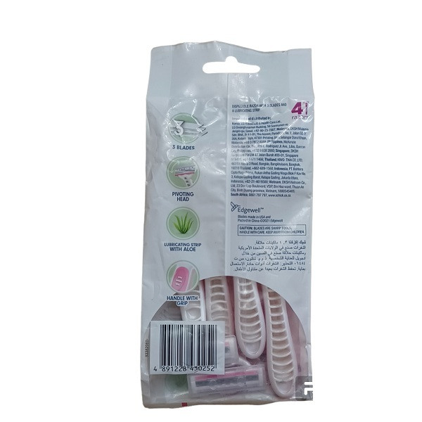 خودتراش زنانه اگزکتا 3 لبه شیک در یک بسته 4 عددی به بازار عرضه شده است. این خودتراش دارای تیغه 3 لبه است که روی آن نوار لغزنده حاوی مواد گیاهی برای راحتی عمل اصلاح است