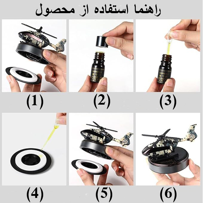 | سایر توضیحات | این خوشبوکننده هنگامی که در معرض نور خورشید قرار گیرد پره های آن شروع به چرخش میکند. اقلام همراه:قطره چکان,پد نانو سرامیکی,خوشبو کننده مایع. |