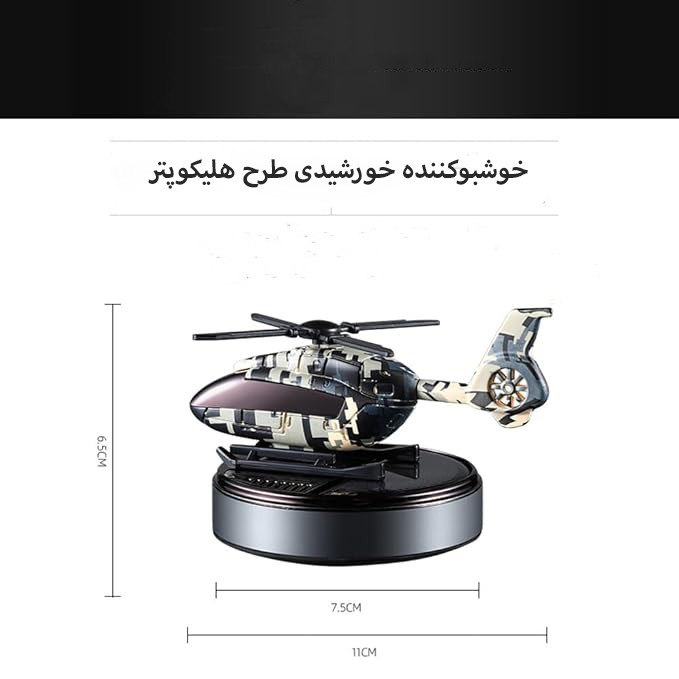 خوشبو کننده خورشیدی طرح بالگرد ارتشی کد ZS-8 جنس این محصول ازپلاستیک فشرده و پایه آن المینیومی میباشد. این محصول با داشتن یک پنل خورشیدی با کیفیت,بدون زحمت نور خورشید را جذب میکند و نیاز به باتری یا شارژ را از بین میبرد. پد خشبو کننده این محصول از جنس نانو سرامیک میباشد.